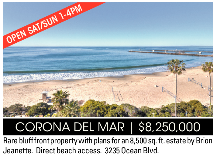 Rare bluff front property with plans for an 8,500 sq. ft. estate by Brion Jeanette. Direct beach access. 3235 Ocean Blvd.