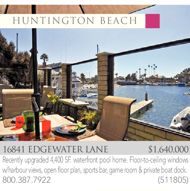 16841 EDGEWATER LANE $1,640,000 Recently upgraded 4,400 SF. waterfront pool home. Floor-to-ceiling windows w/harbour views, open floor plan, sports bar, game room & private boat dock. 800.387.7922 (511805)