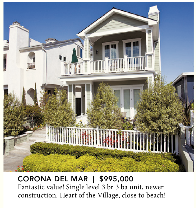 CORONA DEL MAR | $995,000 Fantastic value! Single level 3 br 3 ba unit, newer construction. Heart of the Village, close to beach!
