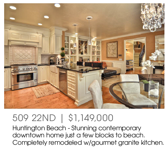 509 22ND | $1,149,000 Huntington Beach - Stunning contemporary downtown home just a few blocks to beach. Completely remodeled w/gourmet granite kitchen.