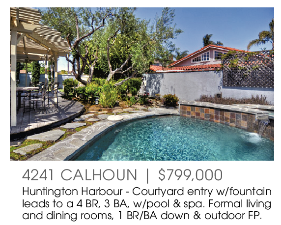 4241 CALHOUN | $799,000 Huntington Harbour - Courtyard entry w/fountain leads to a 4 BR, 3 BA, w/pool & spa. Formal living and dining rooms, 1 BR/BA down & outdoor FP.