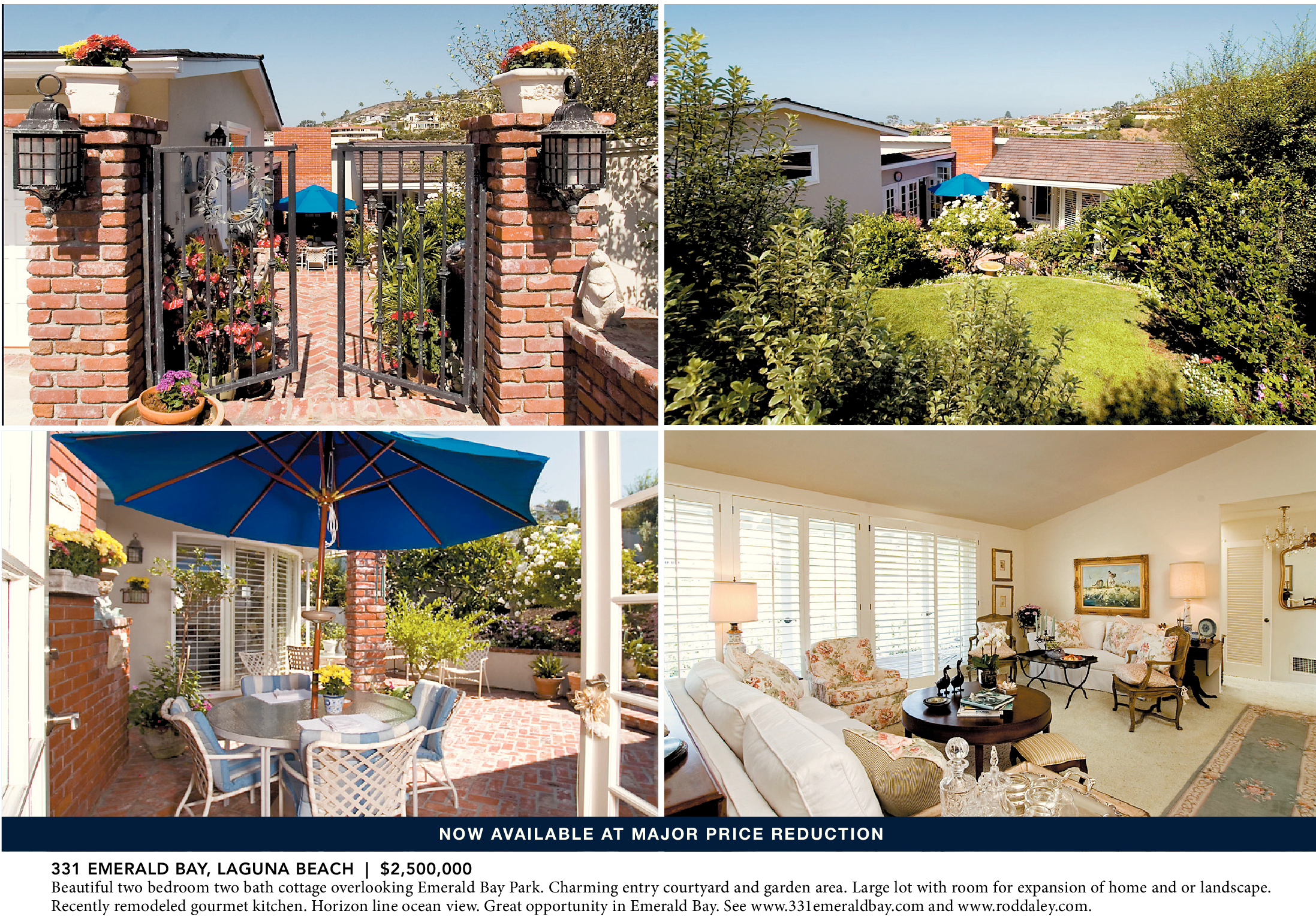 331 EMERALD BAY, LAGUNA BEACH | $2,500,000 Beautiful two bedroom two bath cottage overlooking Emerald Bay Park. Charming entry courtyard and garden area. Large lot with room for expansion of home and or landscape. Recently remodeled gourmet kitchen. Horizon line ocean view. Great opportunity in Emerald Bay. See www.331emeraldbay.com and www.roddaley.com.
