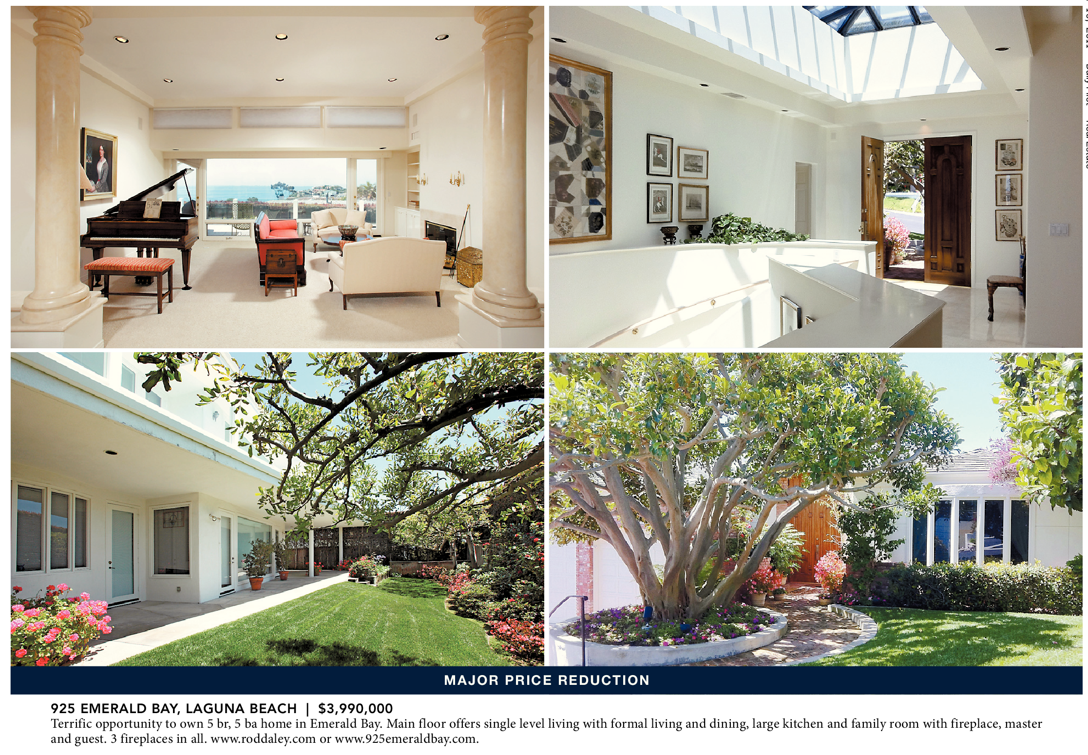 925 EMERALD BAY, LAGUNA BEACH | $3,990,000 Terrific opportunity to own 5 br, 5 ba home in Emerald Bay. Main floor offers single level living with formal living and dining, large kitchen and family room with fireplace, master and guest. 3 fireplaces in all. www.roddaley.com or www.925emeraldbay.com.