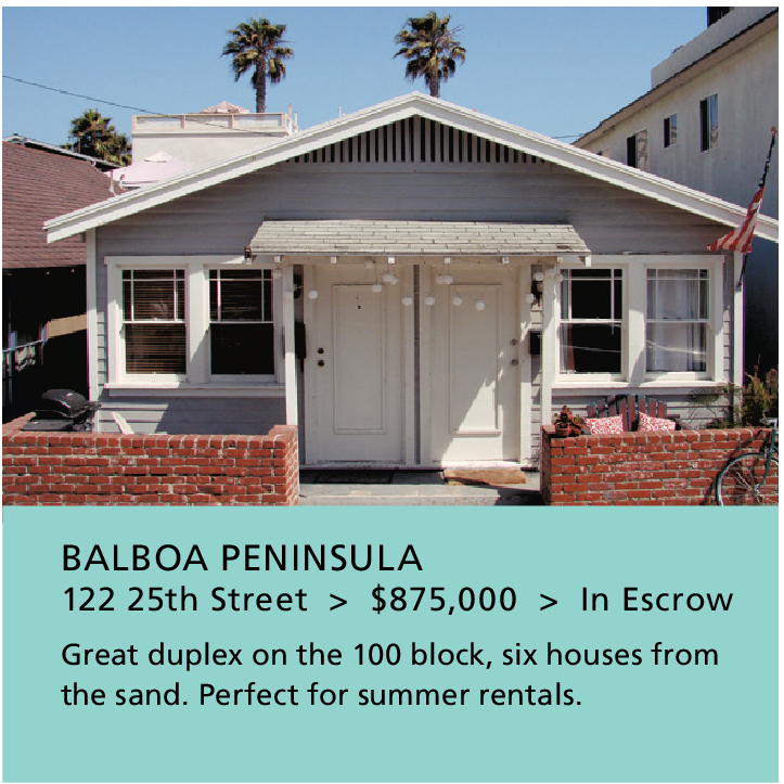 BALBOA PENINSULA 122 25th Street > $875,000 > In Escrow