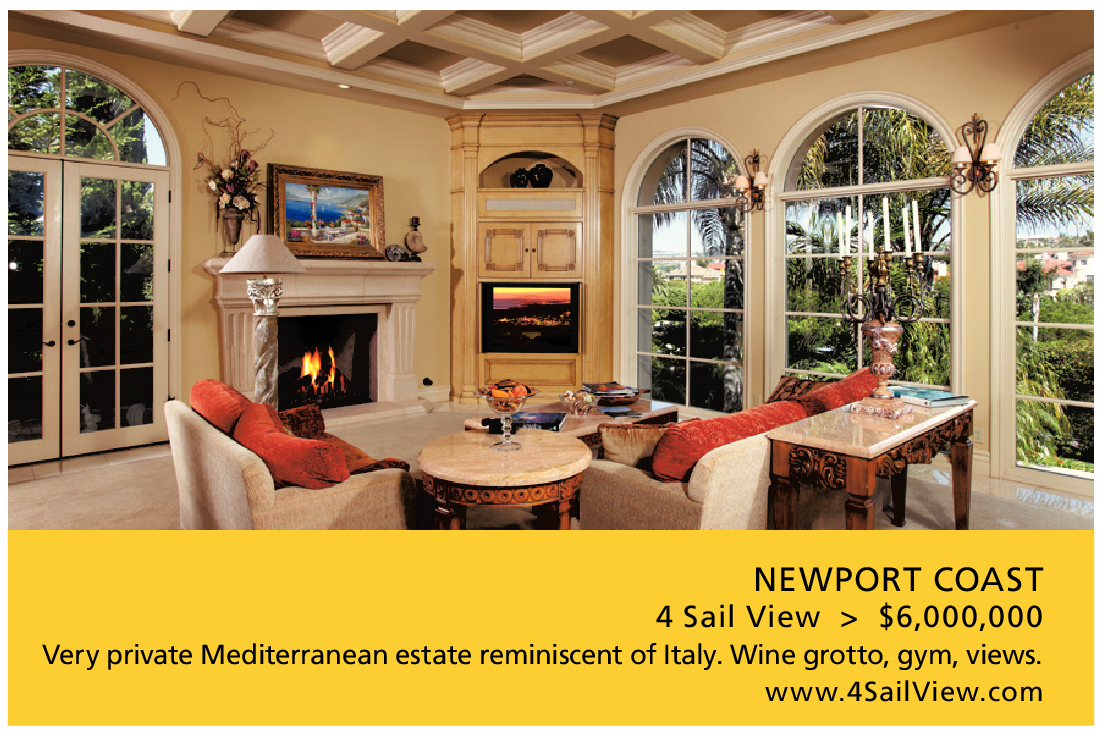 NEWPORT COAST 4 Sail View > $6,000,000 Very private Mediterranean estate reminiscent of Italy. Wine grotto, gym, views.