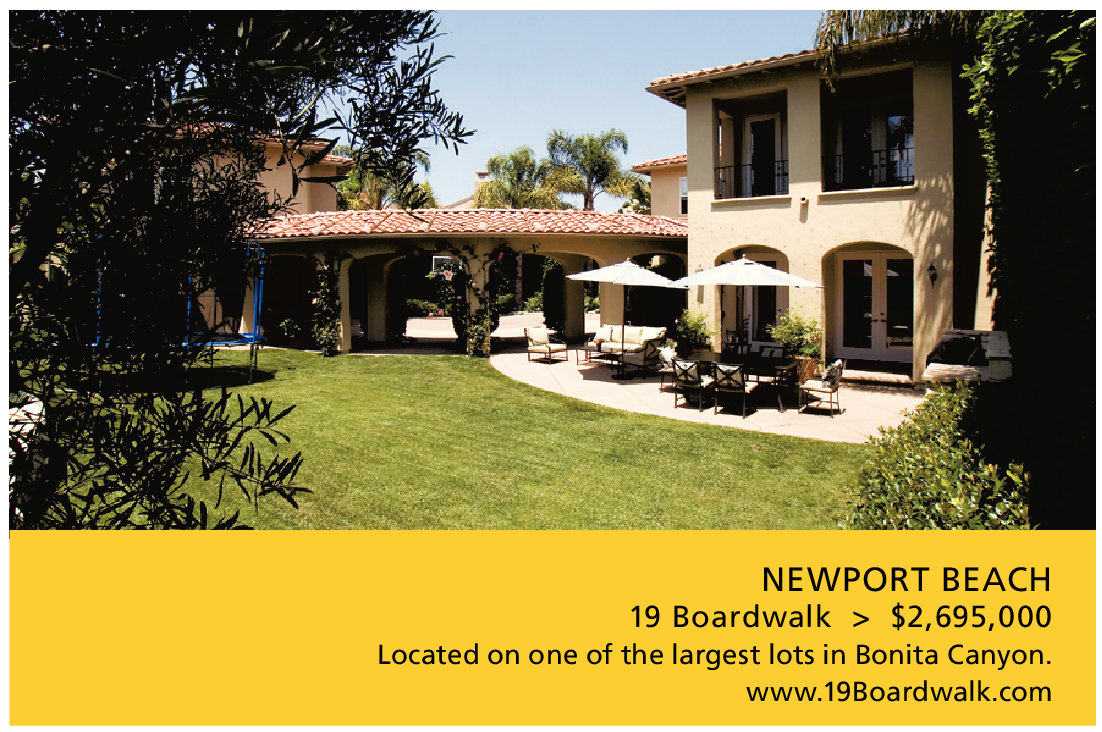NEWPORT BEACH 19 Boardwalk > $2,695,000 Located on one of the largest lots in Bonita Canyon.