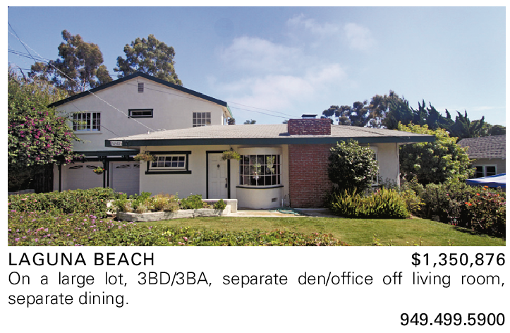 LAGUNA BEACH $1,350,876 On a large lot, 3BD/3BA, separate den/office off living room, separate dining.