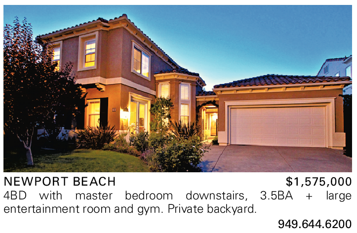 NEWPORT BEACH $1,575,000 4BD with master bedroom downstairs, 3.5BA + large entertainment room and gym. Private backyard.