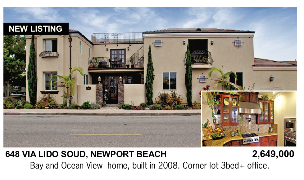 648 VIA LIDO SOUD, NEWPORT BEACH 2,649,000 Bay and Ocean View home, built in 2008. Corner lot 3bed+ office.