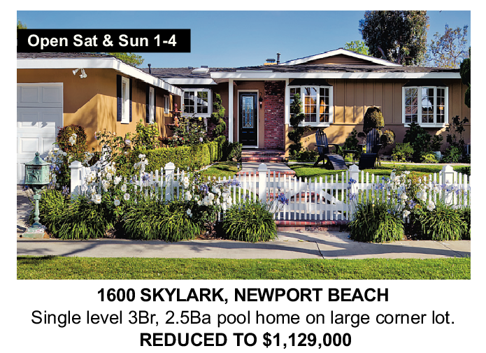 1600 SKYLARK, NEWPORT BEACH Single level 3Br, 2.5Ba pool home on large corner lot.