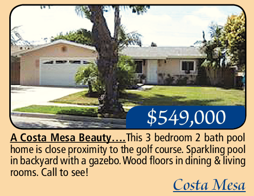 A Costa Mesa Beauty….This 3 bedroom 2 bath pool home is close proximity to the golf course. Sparkling pool in backyard with a gazebo. Wood floors in dining & living rooms. Call to see!
