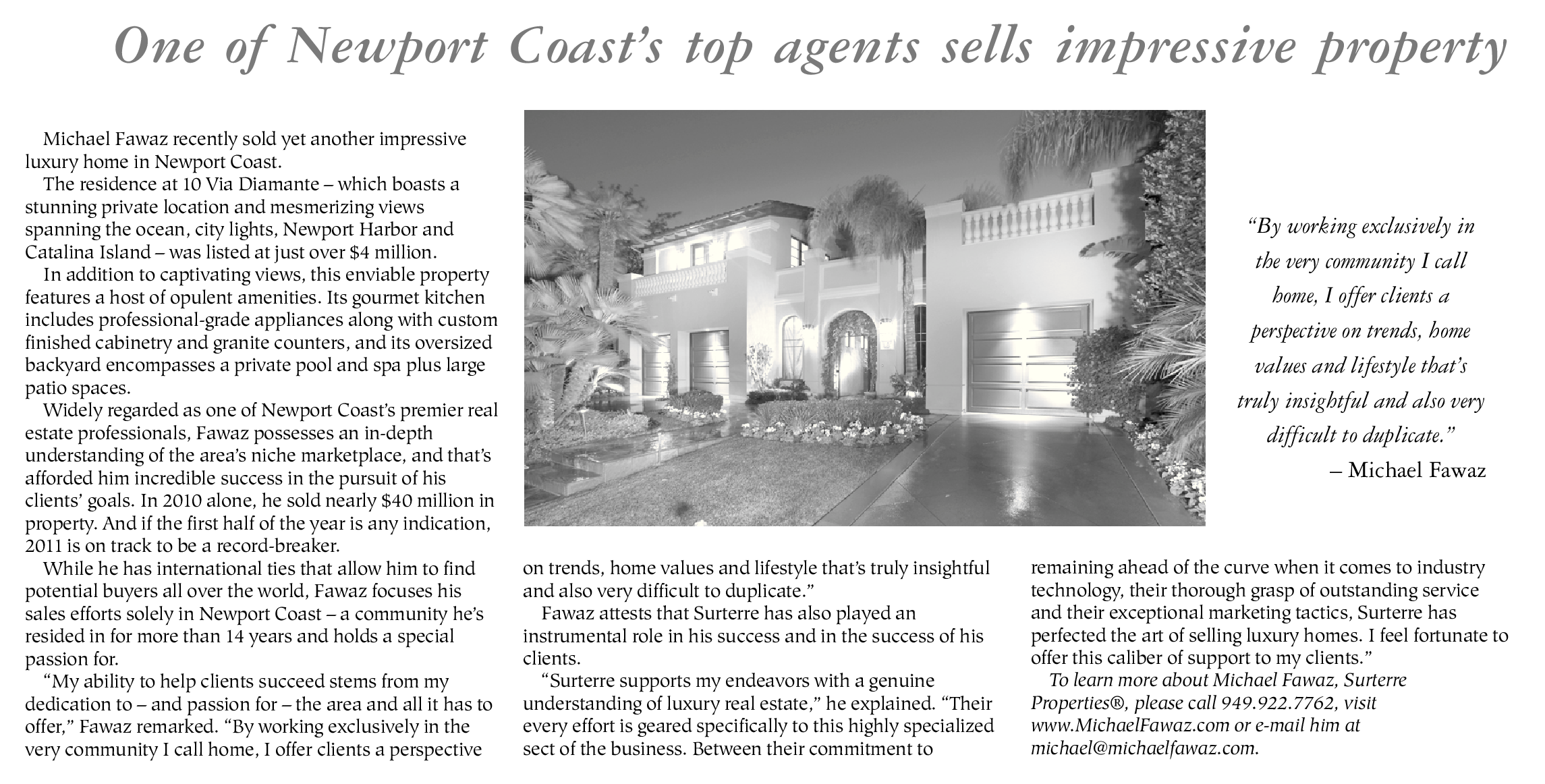 Michael Fawaz recently sold yet another impressive luxury home in Newport Coast.