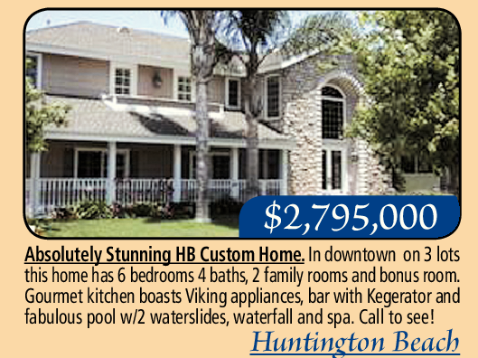Absolutely Stunning HB Custom Home. In downtown on 3 lots this home has 6 bedrooms 4 baths, 2 family rooms and bonus room. Gourmet kitchen boasts Viking appliances, bar with Kegerator and fabulous pool w/2 waterslides, waterfall and spa. Call to see!