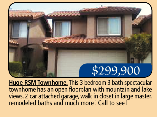 Huge RSM Townhome. This 3 bedroom 3 bath spectacular townhome has an open floorplan with mountain and lake views. 2 car attached garage, walk in closet in large master, remodeled baths and much more! Call to see!