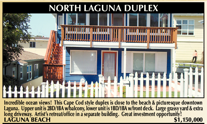 Incredible ocean views! This Cape Cod style duplex is close to the beach & picturesque downtown Laguna. Upper unit is 2BD/1BA w/balcony, lower unit is 1BD/1BA w/front deck. Large grassy yard & extra long driveway. Artist’s retreat/office in a separate building. Great investment opportunity! LAGUNA BEACH $1,150,000