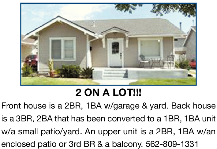 Front house is a 2BR, 1BA w/garage & yard. Back house