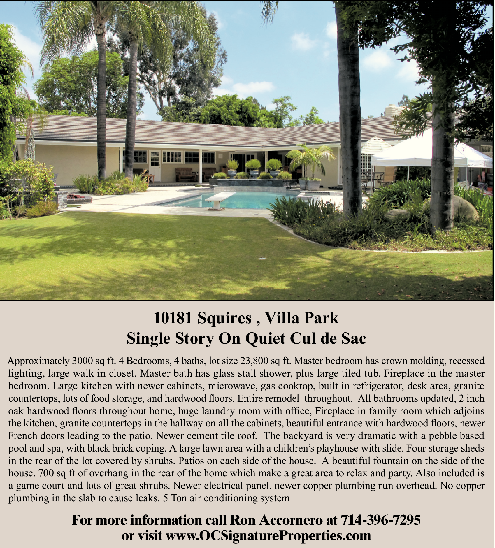 For more information call Ron Accornero at 714-396-7295 or visit www.OCSignatureProperties.com