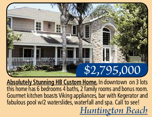 Absolutely Stunning HB Custom Home. In downtown on 3 lots this home has 6 bedrooms 4 baths, 2 family rooms and bonus room. Gourmet kitchen boasts Viking appliances, bar with Kegerator and fabulous pool w/2 waterslides, waterfall and spa. Call to see!