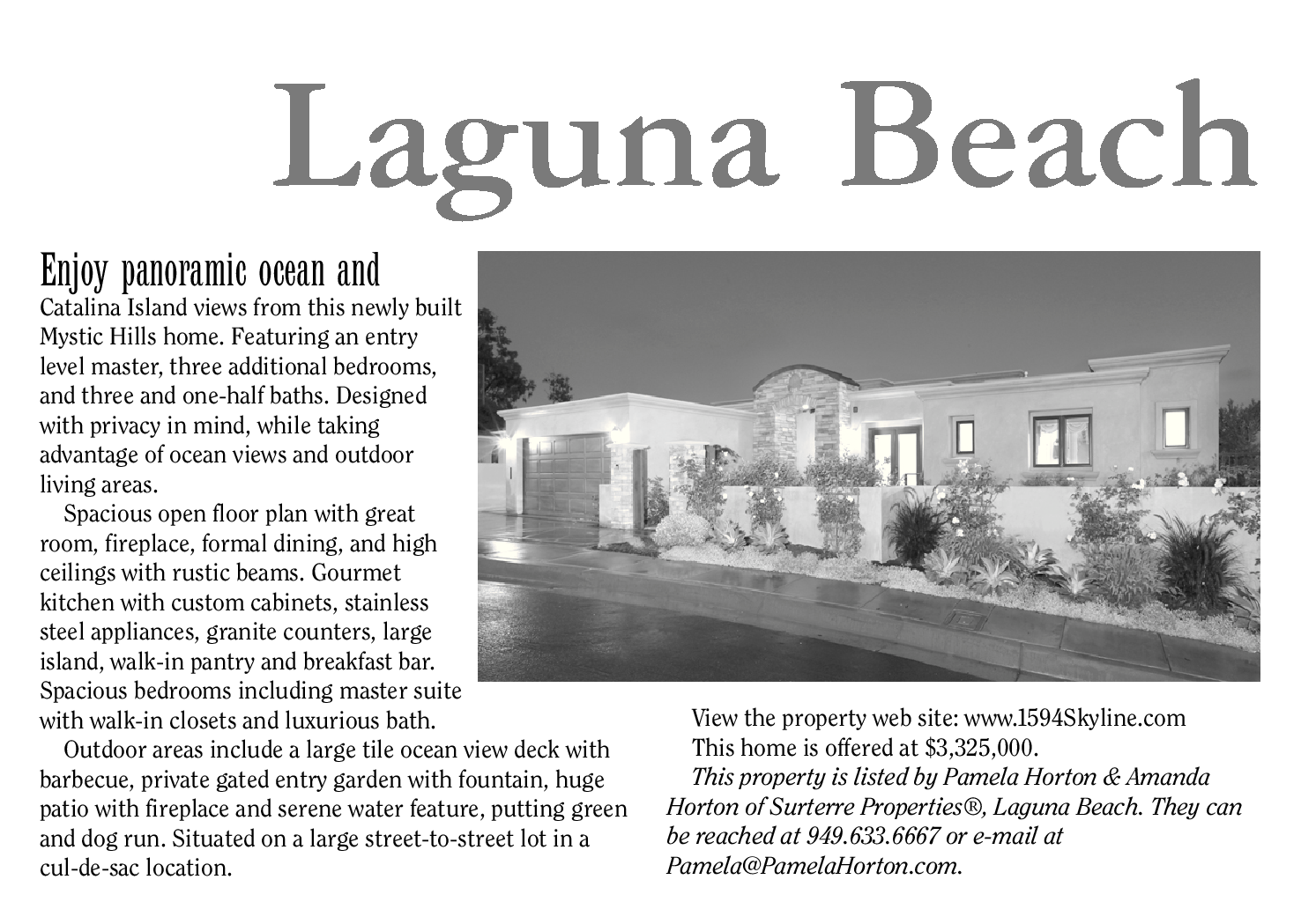 View the property web site: www.1594Skyline.com This home is offered at $3,325,000. This property is listed by Pamela Horton & Amanda Horton of Surterre Properties®, Laguna Beach. They can be reached at 949.633.6667 or e-mail at Pamela@PamelaHorton.com.