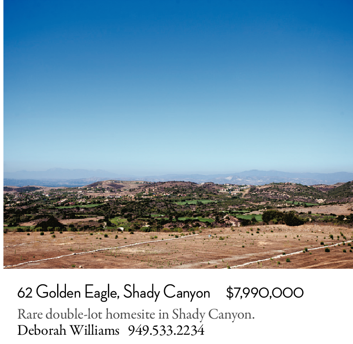 Rare double-lot homesite in Shady Canyon. Deborah Williams 949.533.2234