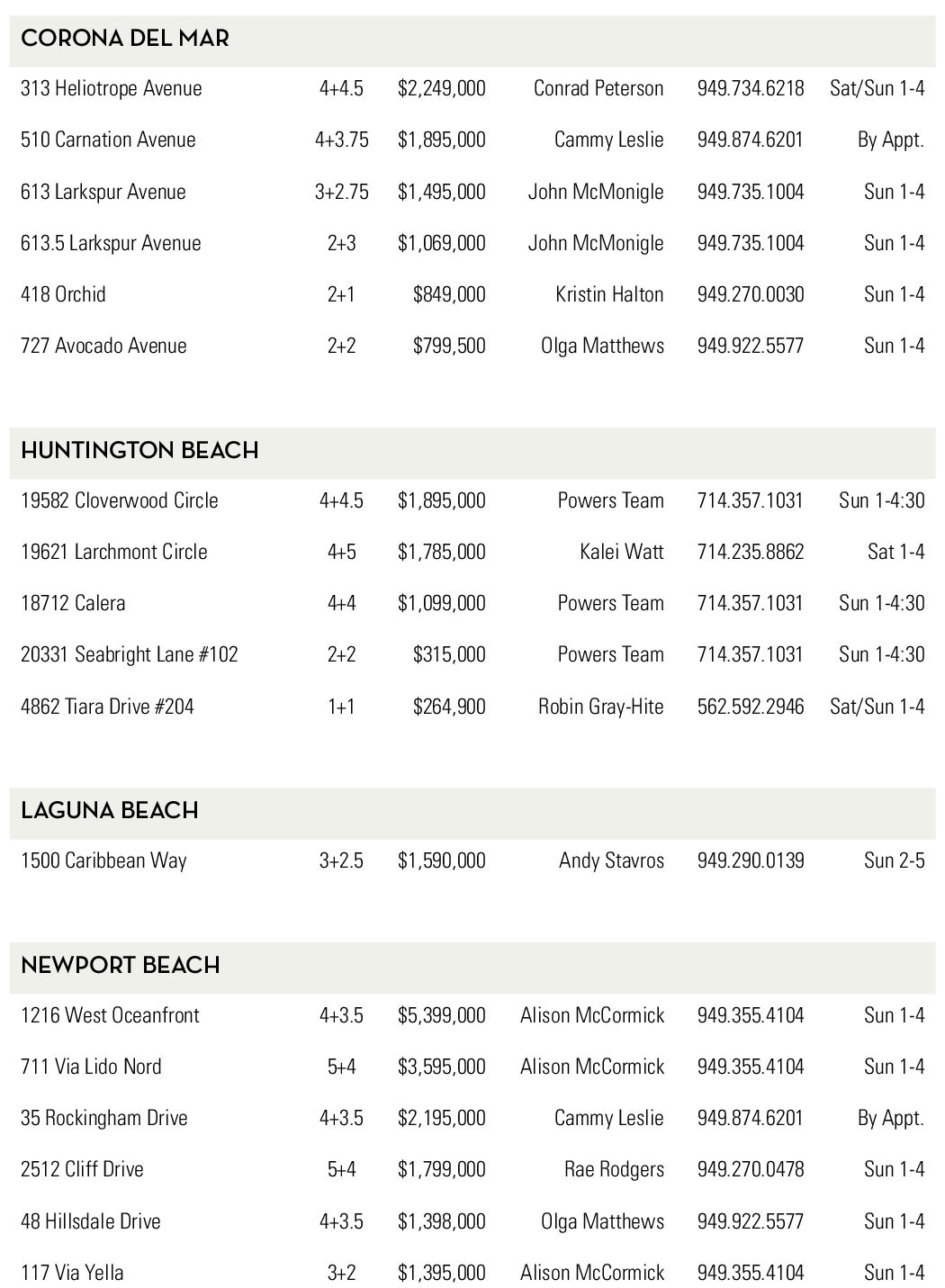 2512 Cliff Drive 5+4 $1,799,000 Rae Rodgers 949.270.0478 Sun 1-4