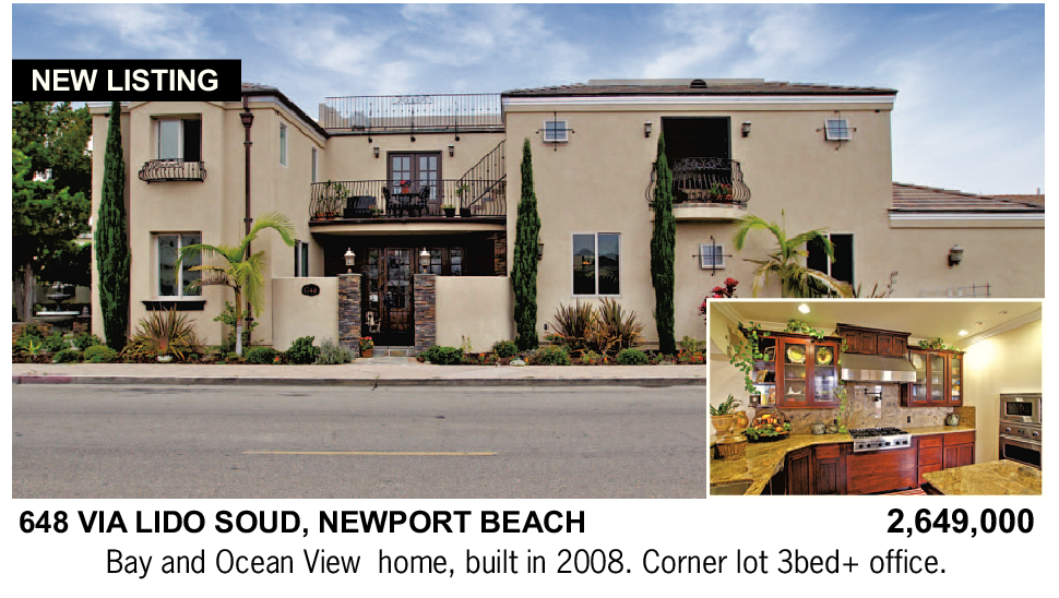648 VIA LIDO SOUD, NEWPORT BEACH 2,649,000 Bay and Ocean View home, built in 2008. Corner lot 3bed+ office.