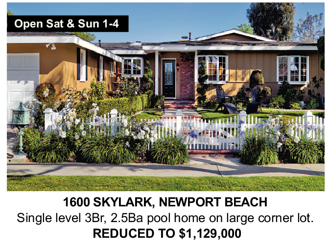 1600 SKYLARK, NEWPORT BEACH Single level 3Br, 2.5Ba pool home on large corner lot.