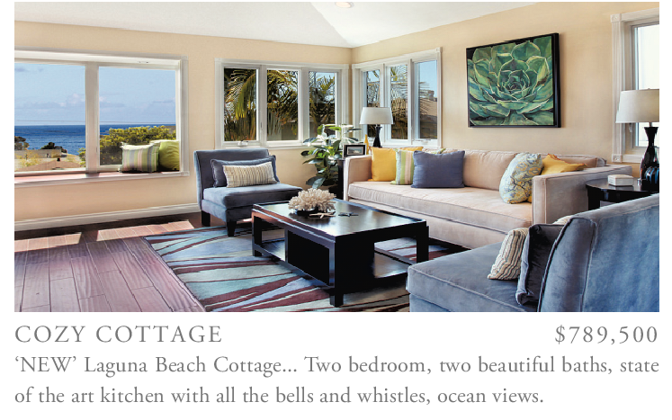 COZY COTTAGE $789,500 ‘NEW’ Laguna Beach Cottage... Two bedroom, two beautiful baths, state of the art kitchen with all the bells and whistles, ocean views.