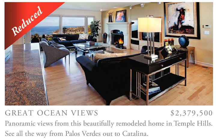 GREAT OCEAN VIEWS $2,379,500 Panoramic views from this beautifully remodeled home in Temple Hills. See all the way from Palos Verdes out to Catalina.