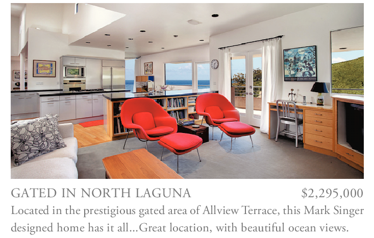 GATED IN NORTH LAGUNA $2,295,000 Located in the prestigious gated area of Allview Terrace, this Mark Singer designed home has it all...Great location, with beautiful ocean views.