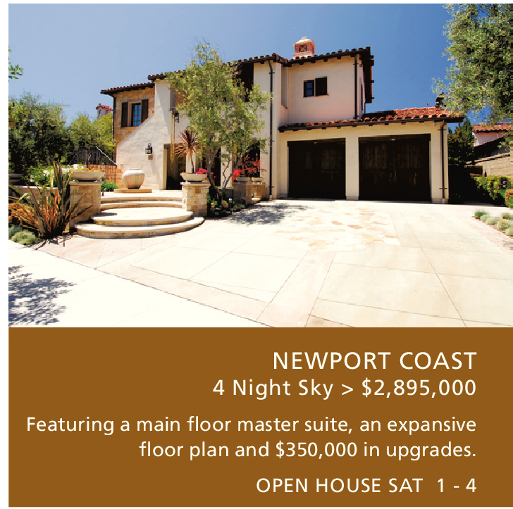 NEWPORT COAST 4 Night Sky > $2,895,000 Featuring a main floor master suite, an expansive floor plan and $350,000 in upgrades.