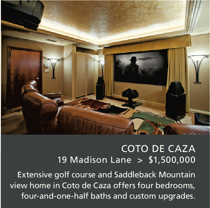 Extensive golf course and Saddleback Mountain view home in Coto de Caza offers four bedrooms, four-and-one-half baths and custom upgrades.