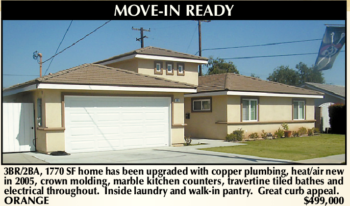 MOVE-IN READY 3BR/2BA, 1770 SF home has been upgraded with copper plumbing, heat/air new in 2005, crown molding, marble kitchen counters, travertine tiled bathes and electrical throughout. Inside laundry and walk-in pantry. Great curb appeal. ORANGE $499,000