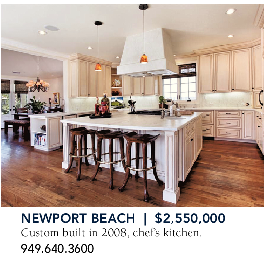 NEWPORT BEACH | $2,550,000 Custom built in 2008, chef’s kitchen. 949.640.3600