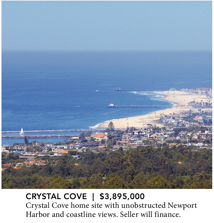 CRYSTAL COVE | $3,895,000 Crystal Cove home site with unobstructed Newport Harbor and coastline views. Seller will finance.