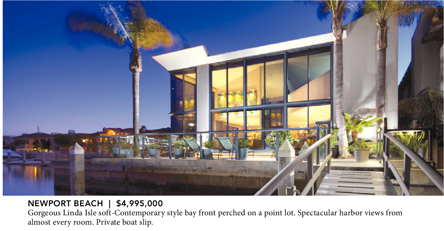 NEWPORT BEACH | $4,995,000 Gorgeous Linda Isle soft-Contemporary style bay front perched on a point lot. Spectacular harbor views from almost every room. Private boat slip.