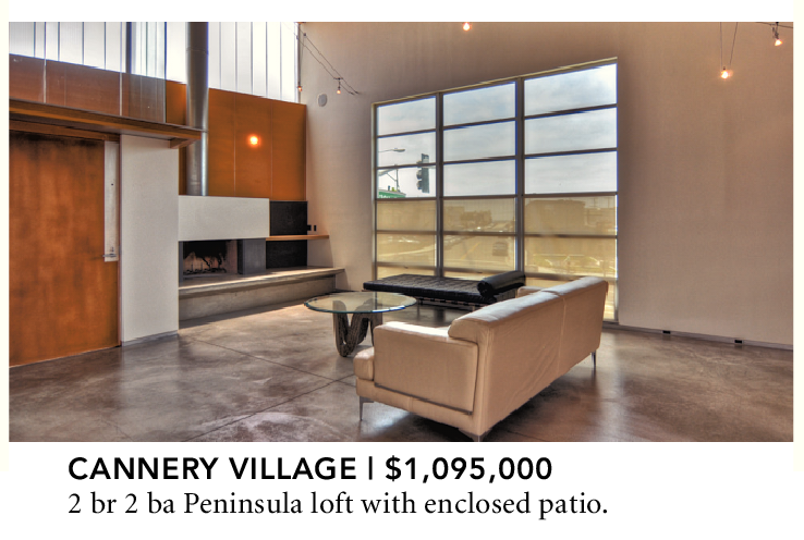 CANNERY VILLAGE | $1,095,000 2 br 2 ba Peninsula loft with enclosed patio.