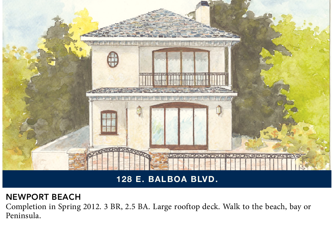 NEWPORT BEACH Completion in Spring 2012. 3 BR, 2.5 BA. Large rooftop deck. Walk to the beach, bay or Peninsula.