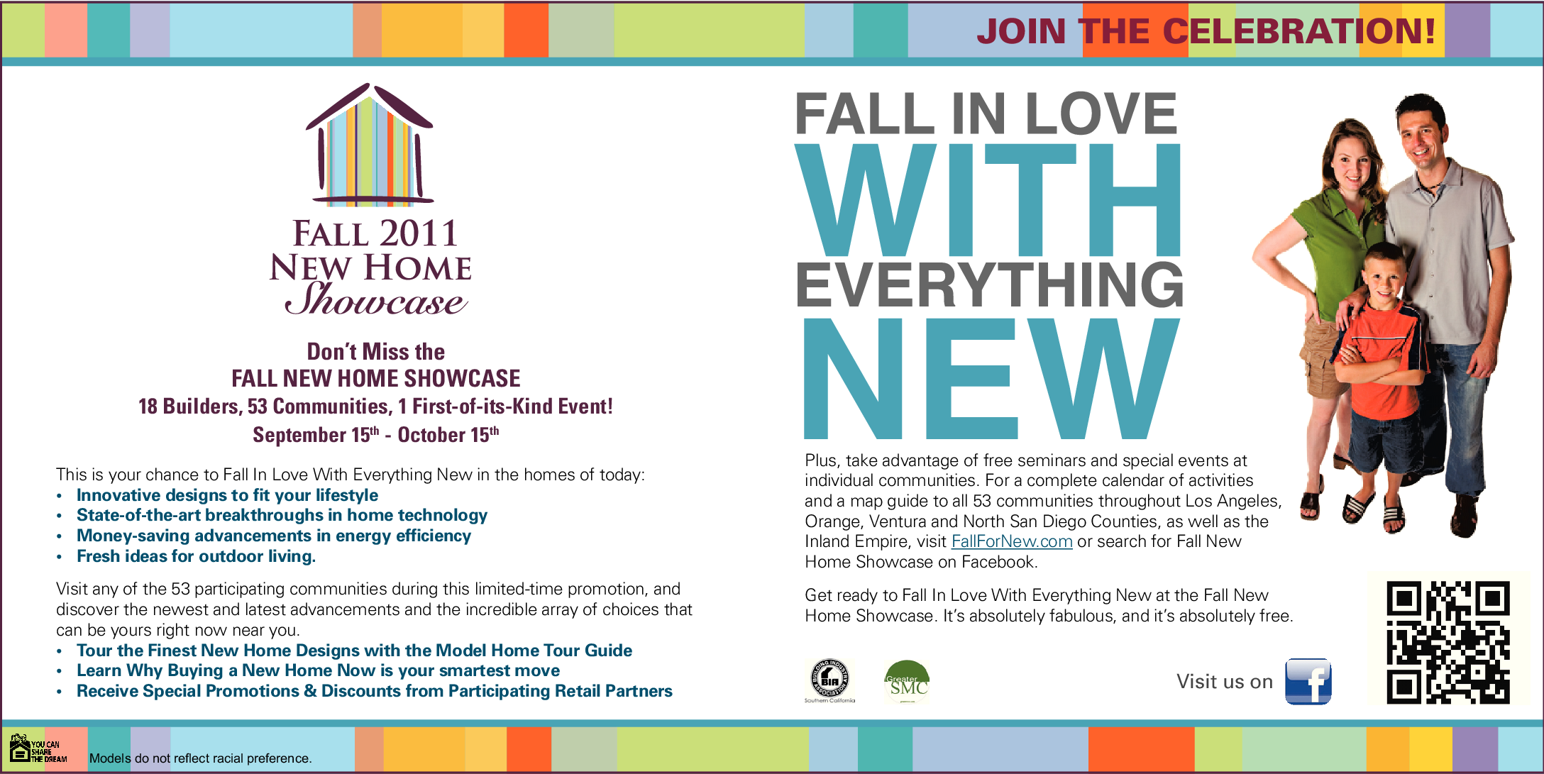Visit any of the 53 participating communities during this limited-time promotion, and discover the newest and latest advancements and the incredible array of choices that can be yours right now near you. • Tour the Finest New Home Designs with the Model Home Tour Guide • Learn Why Buying a New Home Now is your smartest move • Receive Special Promotions & Discounts from Participating Retail Partners Models do not reflect racial preference. JOIN THE CELEBRATION! Don’t Miss the FALL NEW HOME SHOWCASE 18 Builders, 53 Communities, 1 First-of-its-Kind Event! September 15 th - October 15 th Plus, take advantage of free seminars and special events at This is your chance to Fall In Love With Everything New in the homes of today: individual communities. For a complete calendar of activities • Innovative designs to fit your lifestyle and a map guide to all 53 communities throughout Los Angeles, • State-of-the-art breakthroughs in home technology Orange, Ventura and North San Diego Counties, as well as the • Money-saving advancements in energy efficiency Inland Empire, visit FallForNew.com or search for Fall New • Fresh ideas for outdoor living. Home Showcase on Facebook. Get ready to Fall In Love With Everything New at the Fall New Home Showcase. It’s absolutely fabulous, and it’s absolutely free. Visit us on