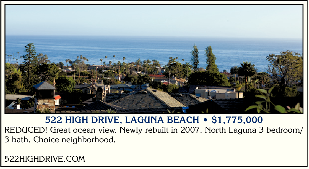 522 high Drive, laguna Beach • $1,775,000 REDUCED! Great ocean view. Newly rebuilt in 2007. North Laguna 3 bedroom/ 3 bath. Choice neighborhood.