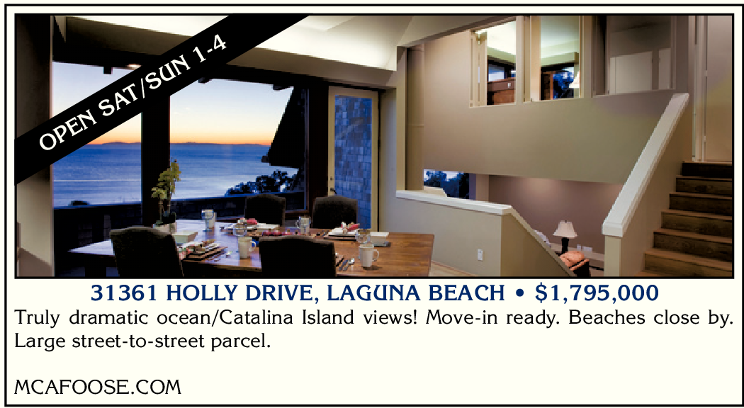 31361 holly Drive, laguna Beach • $1,795,000 Truly dramatic ocean/Catalina Island views! Move-in ready. Beaches close by. Large street-to-street parcel.