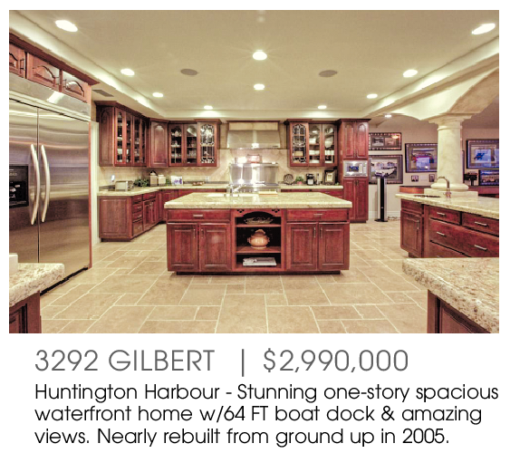 3292 GILBERT | $2,990,000 Huntington Harbour - Stunning one-story spacious waterfront home w/64 FT boat dock & amazing views. Nearly rebuilt from ground up in 2005.