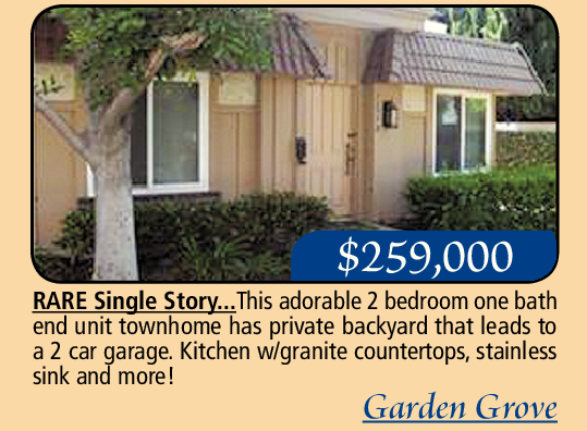RARE Single Story...This adorable 2 bedroom one bath end unit townhome has private backyard that leads to a 2 car garage. Kitchen w/granite countertops, stainless sink and more!