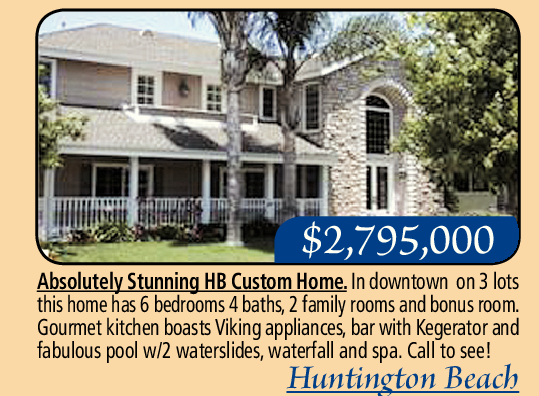 Absolutely Stunning HB Custom Home. In downtown on 3 lots this home has 6 bedrooms 4 baths, 2 family rooms and bonus room. Gourmet kitchen boasts Viking appliances, bar with Kegerator and fabulous pool w/2 waterslides, waterfall and spa. Call to see!