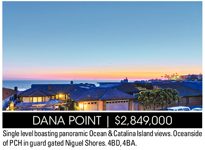 Single level boasting panoramic Ocean & Catalina Island views. Oceanside of PCH in guard gated Niguel Shores. 4BD, 4BA.