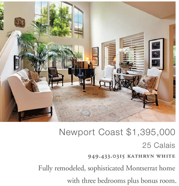 Newport Coast $1,395,000 25 Calais 949.433.0315 kathryn white Fully remodeled, sophisticated Montserrat home with three bedrooms plus bonus room.