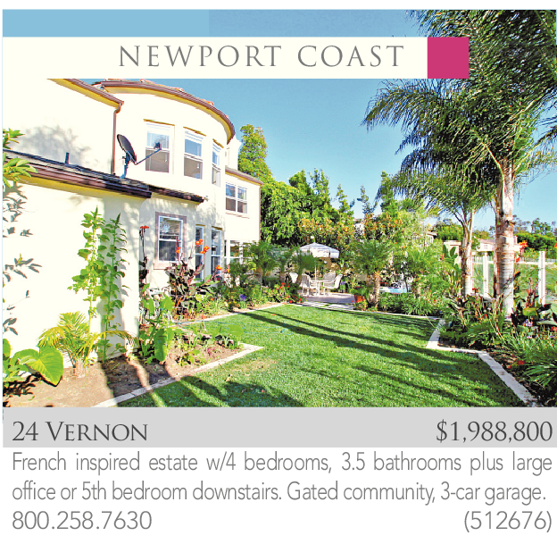24 Vernon $1,988,800 French inspired estate w/4 bedrooms, 3.5 bathrooms plus large office or 5th bedroom downstairs. Gated community, 3-car garage. 800.258.7630 (512676)