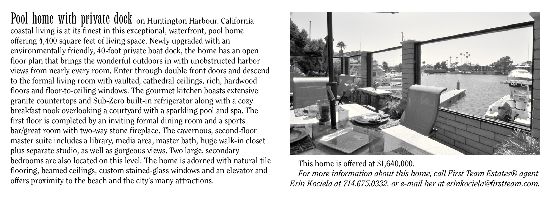 This home is offered at $1,640,000. For more information about this home, call First Team Estates® agent Erin Kociela at 714.675.0332, or e-mail her at erinkociela@firstteam.com.