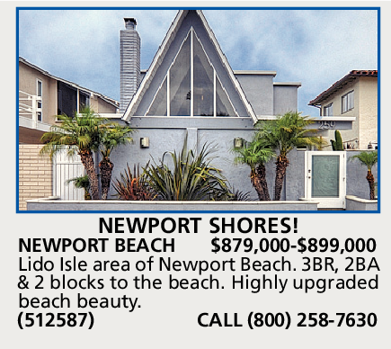 NEWPORT BEACH $879,000-$899,000 Lido Isle area of Newport Beach. 3BR, 2BA & 2 blocks to the beach. Highly upgraded beach beauty.