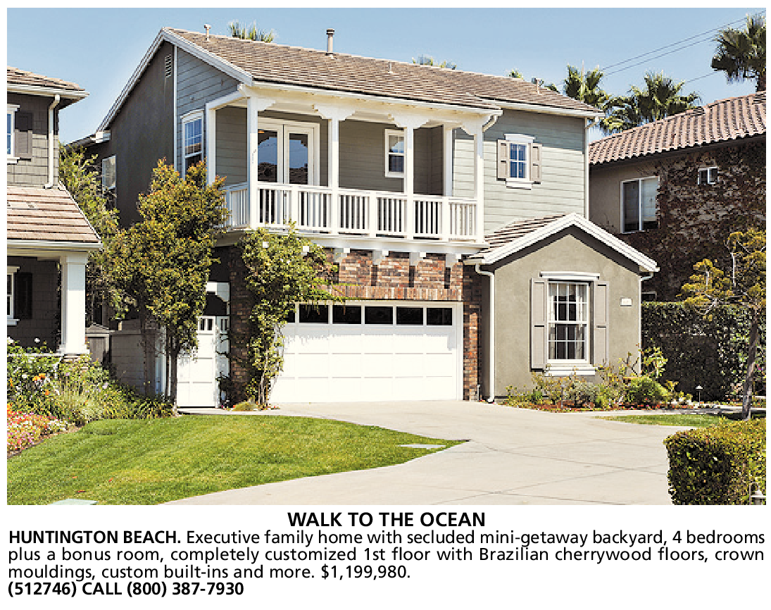 WALK TO THE OCEAN HUNTINGTON BEACH. Executive family home with secluded mini-getaway backyard, 4 bedrooms plus a bonus room, completely customized 1st floor with Brazilian cherrywood floors, crown mouldings, custom built-ins and more. $1,199,980. (512746) CALL (800) 387-7930